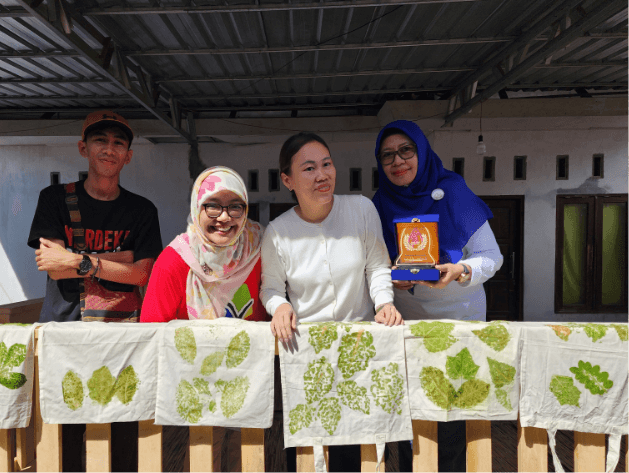 The trip began with a visit to the ancient Bayan Beleq Mosque, the oldest mosque in Bayan, established around the 15th century AD. Visitors are required to wear traditional cloth to enter this area. The group then explored the terraced rice fields and visited the Jajaq Bayan weaving group to experience weaving with group members and children learning to weave at the Jajaq Bayan studio. After lunch, participants engaged in eco-pounding, a natural dyeing technique using leaves and pounding methods. Each participant took home their eco-pounding creations and tools.